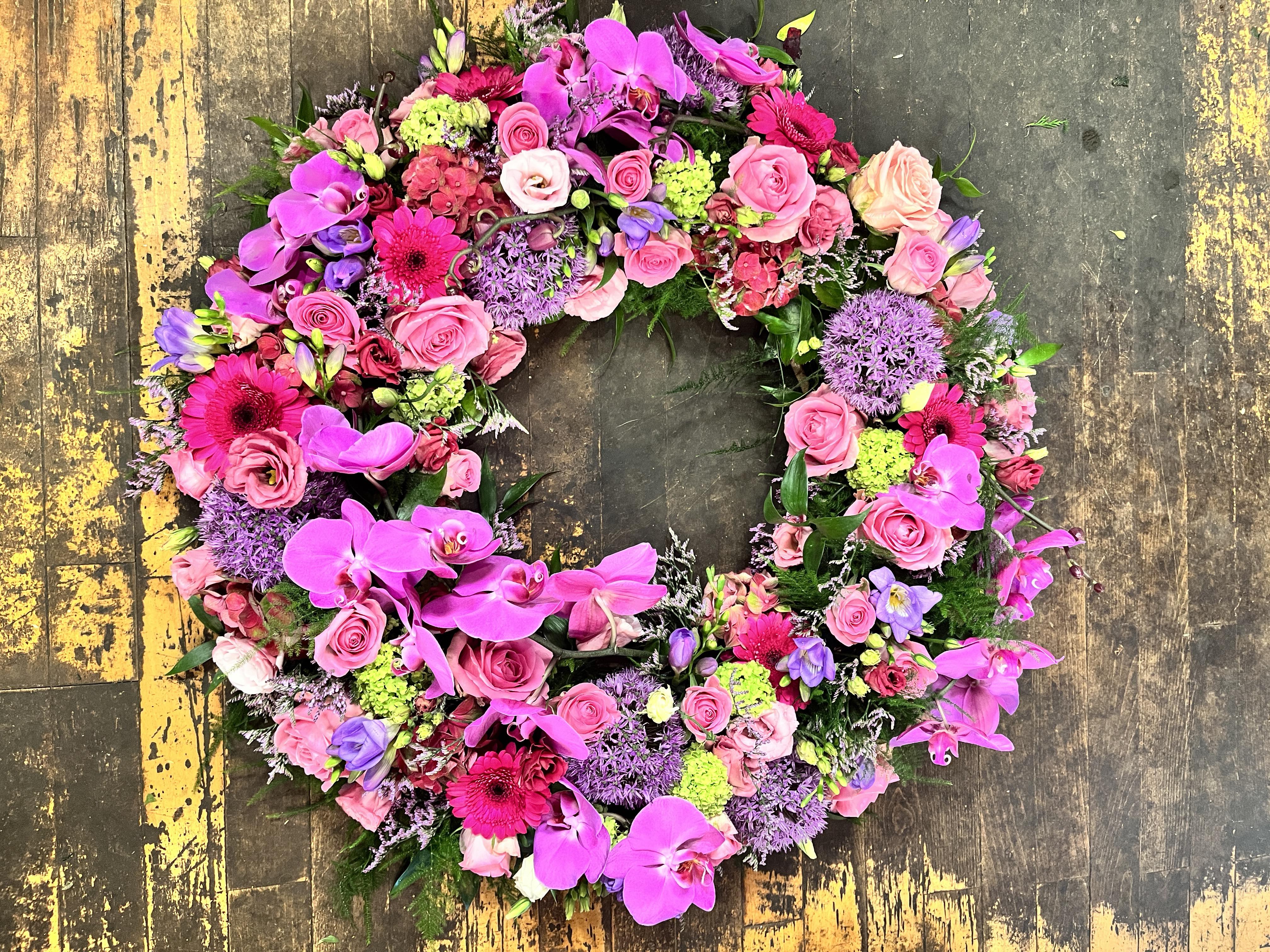 Vi binder buketten eller kransen efter stilen på billedet og i farven, du har ønsket.
