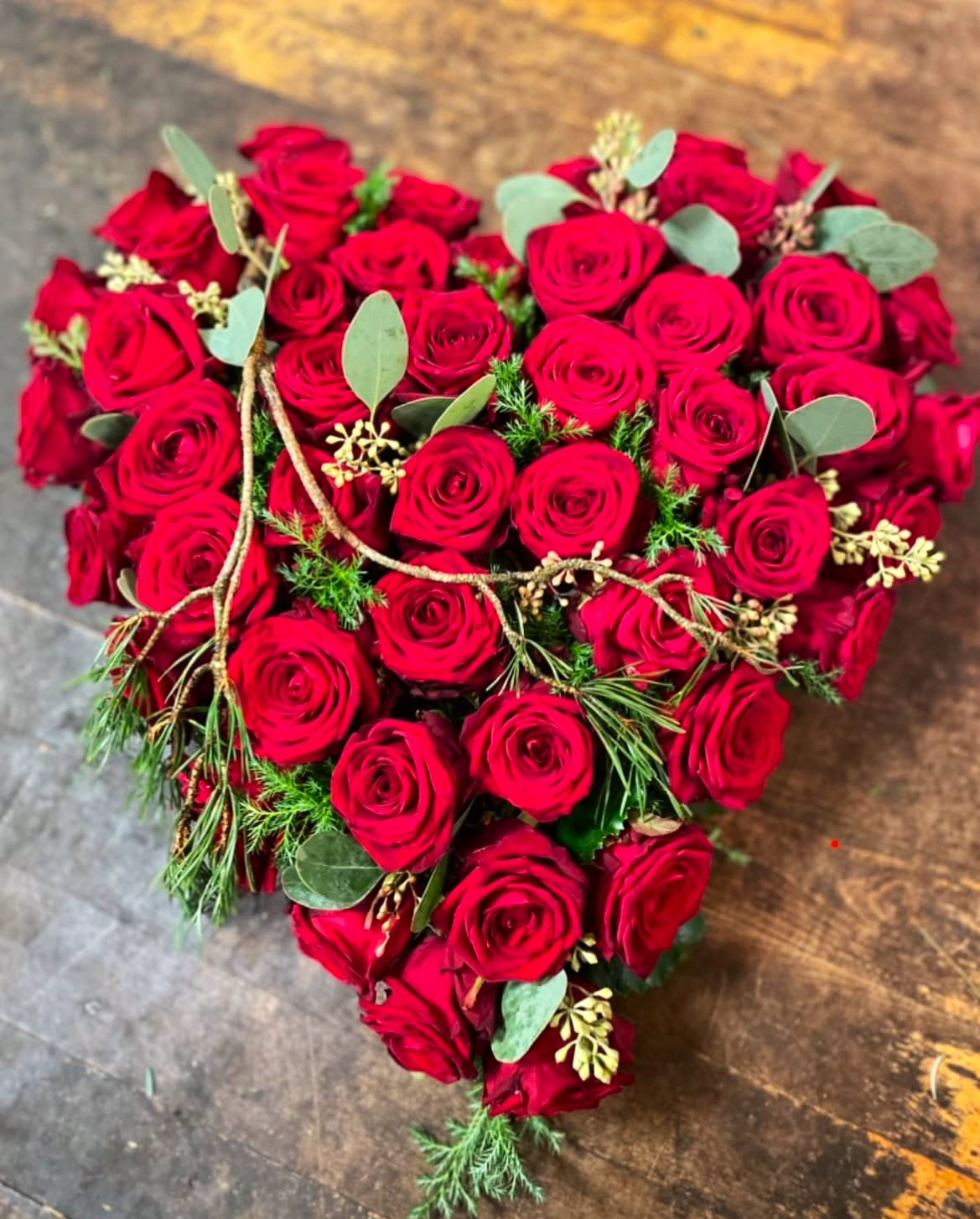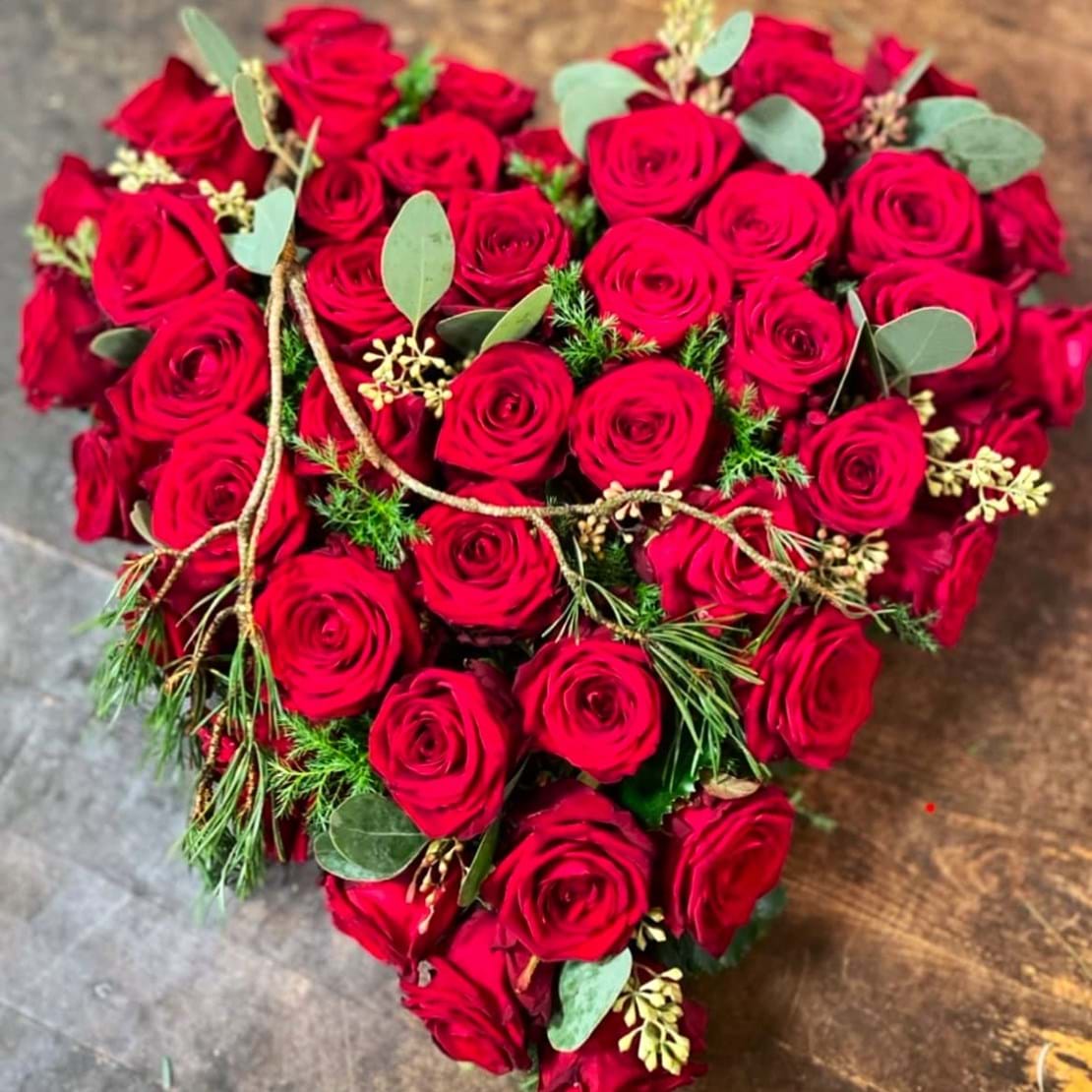 En overdådig og helt igennem enkel og flot afsked. Hjertet dekoreres udelukkende med roser, og kærligheden er ikke til at tage fejl af. Vælg et hjerte som formen på din afsked, og få den lavet med mange roser, der sammen skaber ro og elegance.