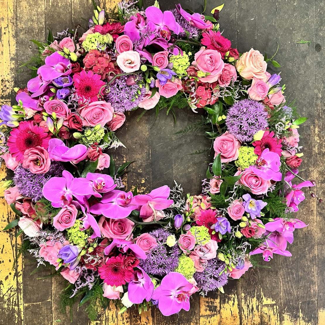 Oasiskransen i stærke farver understreger livets gang, og passer perfekt til afdøde, hvis energi og humør var sprudlende eller måske altid med på den værste. De stærke farver lyser op på kirkegulvet, og du vil ikke undgå, at den vil skille sig ud.